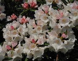 Very compact growing shrub with shiny dark green foliage. Flowers are pure white with a bit of red spotting inside.