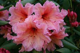 Flower openly funnel-shaped pinkish-orange with pink and orange shading and a yellow eye. Leaves twisted, light green.