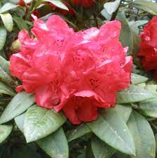 This plant has scarlet red, waxy flowers with darker speckling. It is eye-catching and the flowers form a spectacular ball-shaped truss and lovely matt green foliage. Likes partial shade.