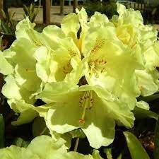 Yellow-lemon flowers with a splash of red. Dark green leaves.