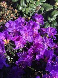 Flowers are vibrant mauve-blue, evergreen plant.